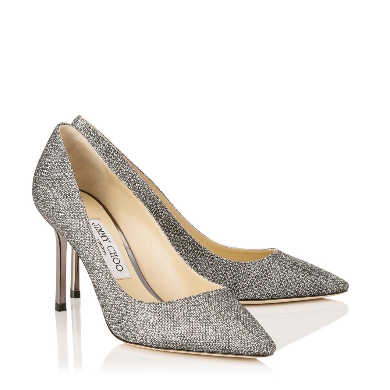 A firm favourite in the Jimmy Choo repertoire, the Romy pointed pump is a wear-everywhere shoe that exudes elegance. Updated with a contemporary anthracite lamé glitter finish, this stiletto heel will ensure you take centre stage at any party occasion.
