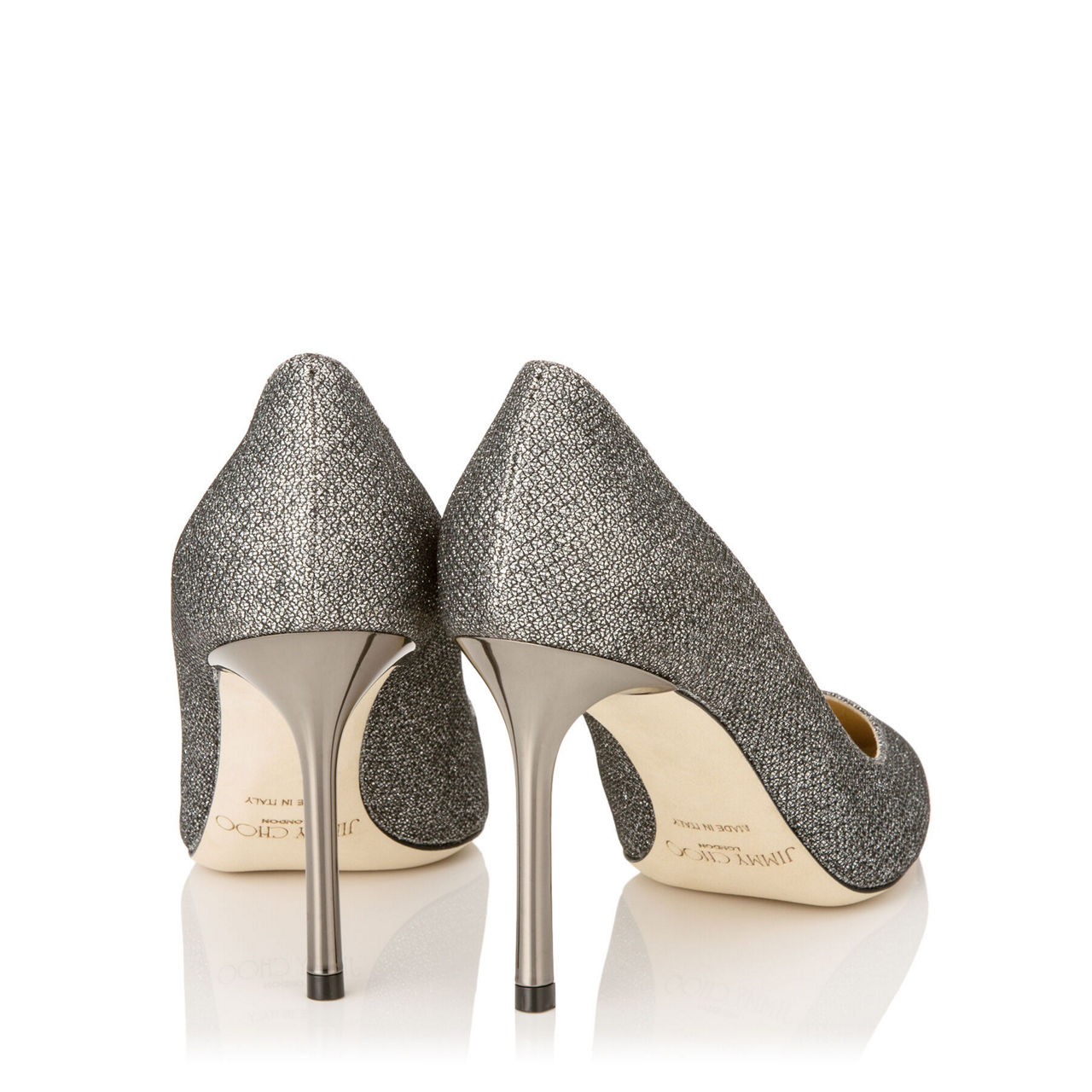 JIMMY CHOO Romy 85 Anthracite Lamé Pointy Toe Pumps