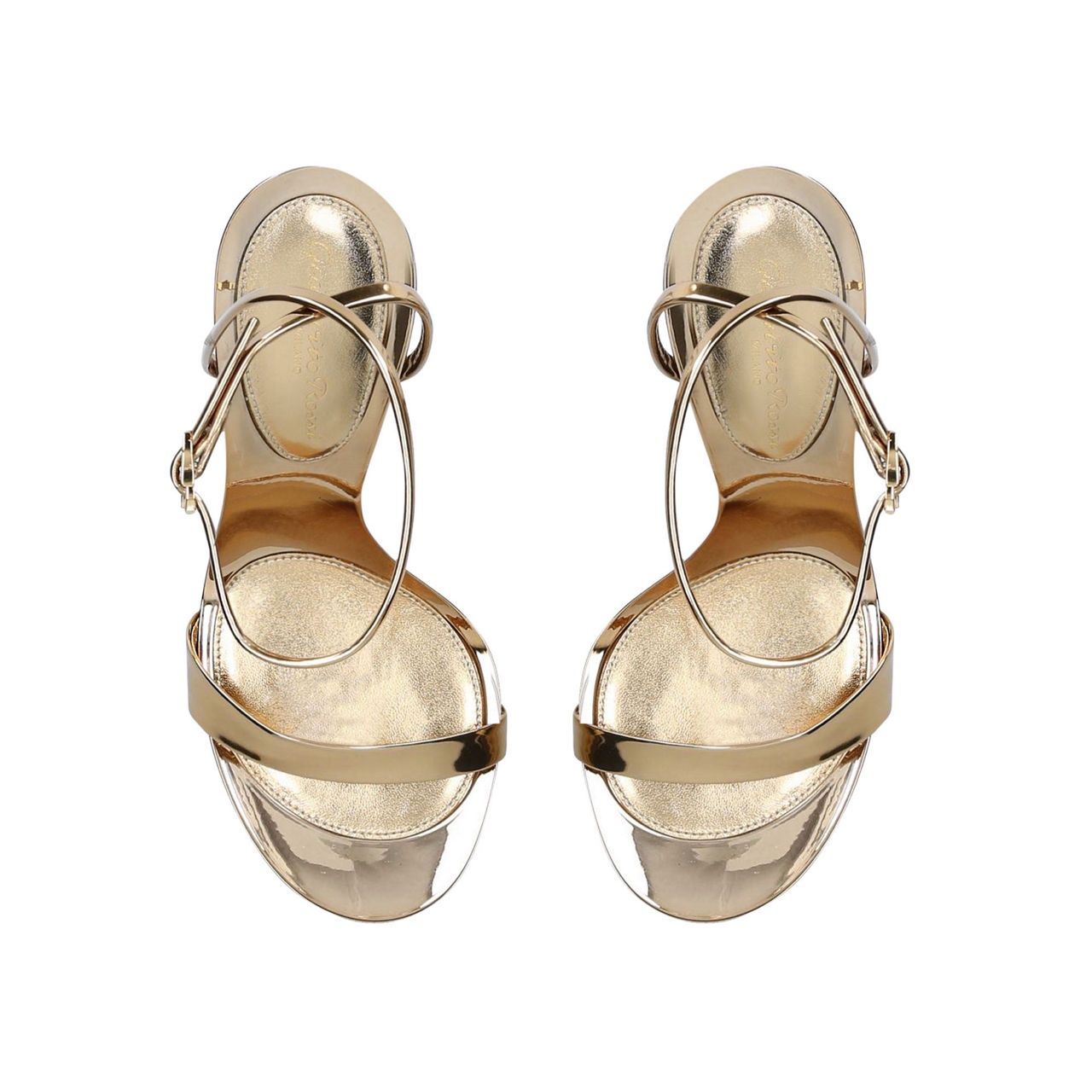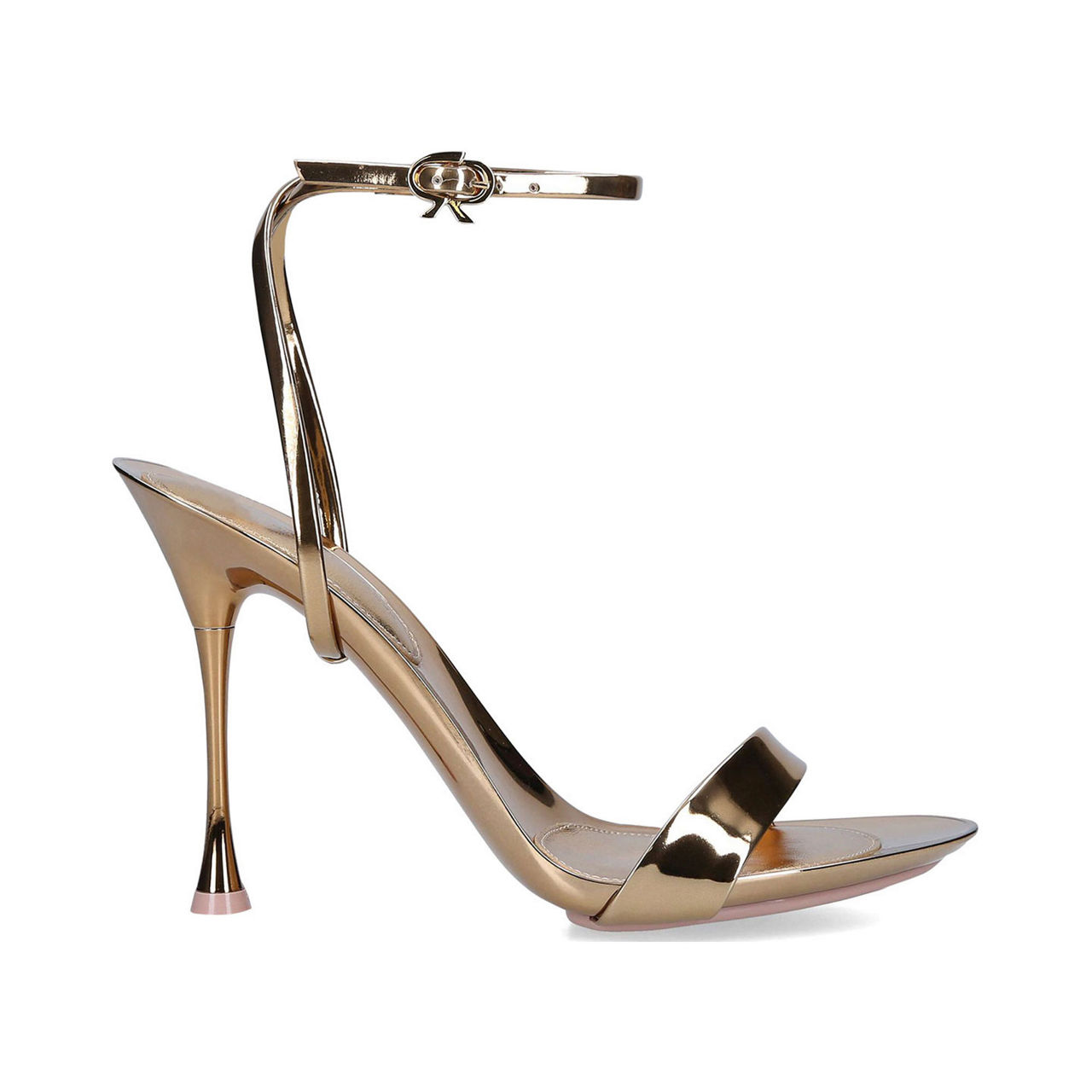 Spice up your footwear selection with Gianvito Rossi's Spice Ribbon sandals, poised on a high flared heel for a contemporary silhouette. The pared-back silhouette is crafted from high-shine metallic leather, straps across the foot and around the ankle offering a barely-there finish for your evening edit.