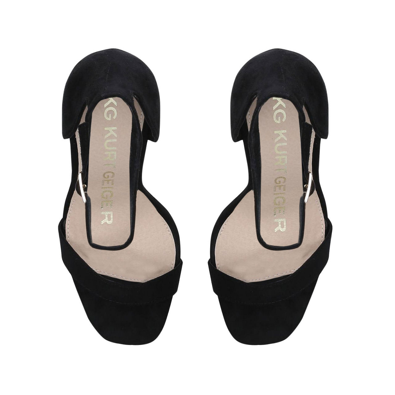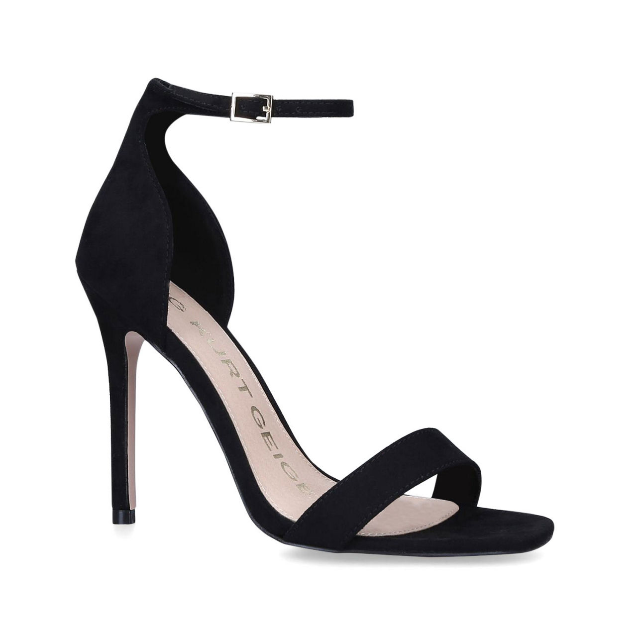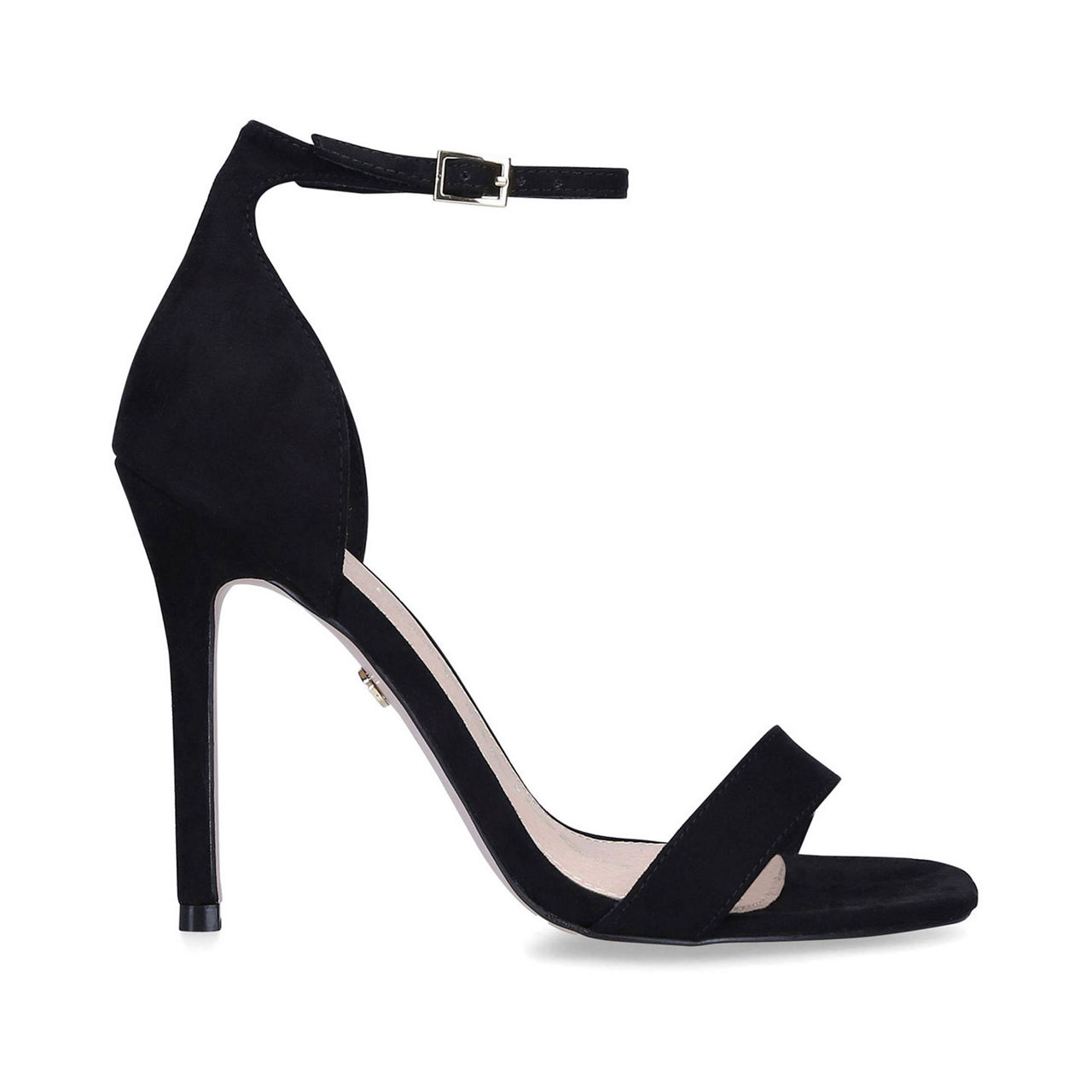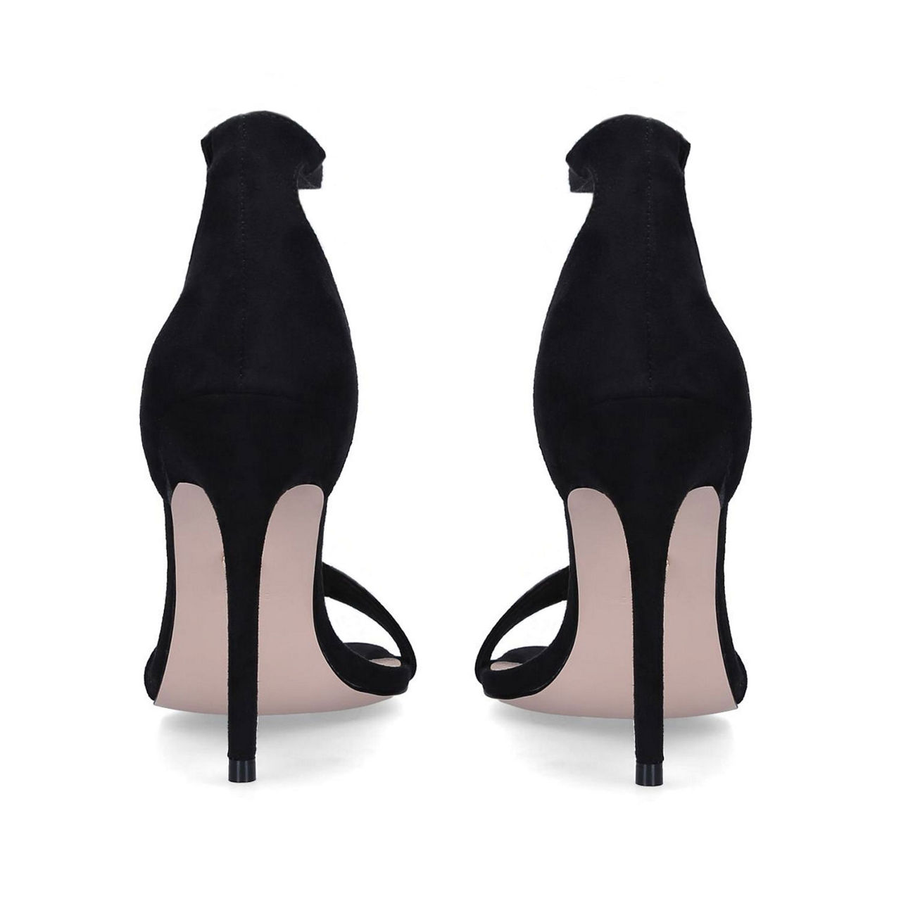 Get geared up for party season in these black suedette heels by KG Kurt Geiger. The sleek, simple design works a stiletto heel, single strap across the toe and an ankle strap fastened by a gold-tone buckle.