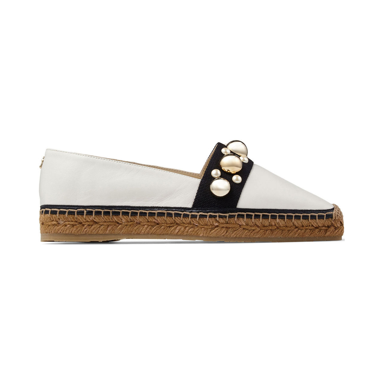 Elevate summer looks with the Dru espadrilles from Jimmy Choo. Bringing an element of femininity and glamour, they boast a soft Nappa leather construction with a classic jute sole and are finished with a pearl and crystal embellishment to the vamp.