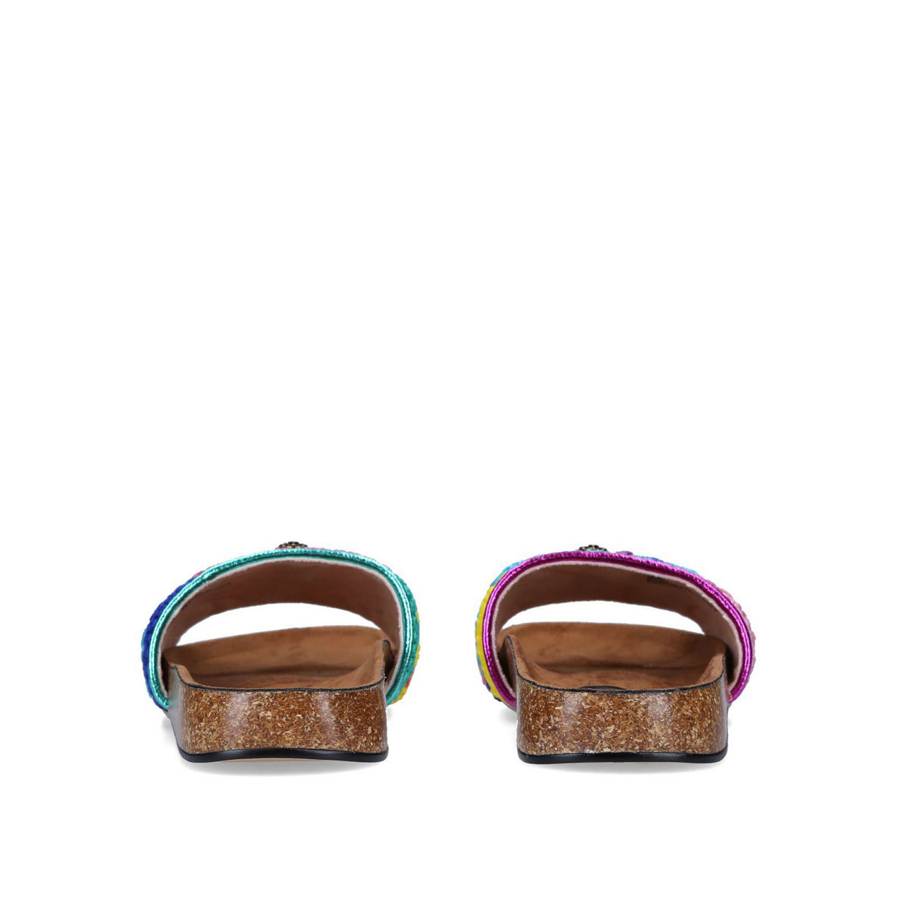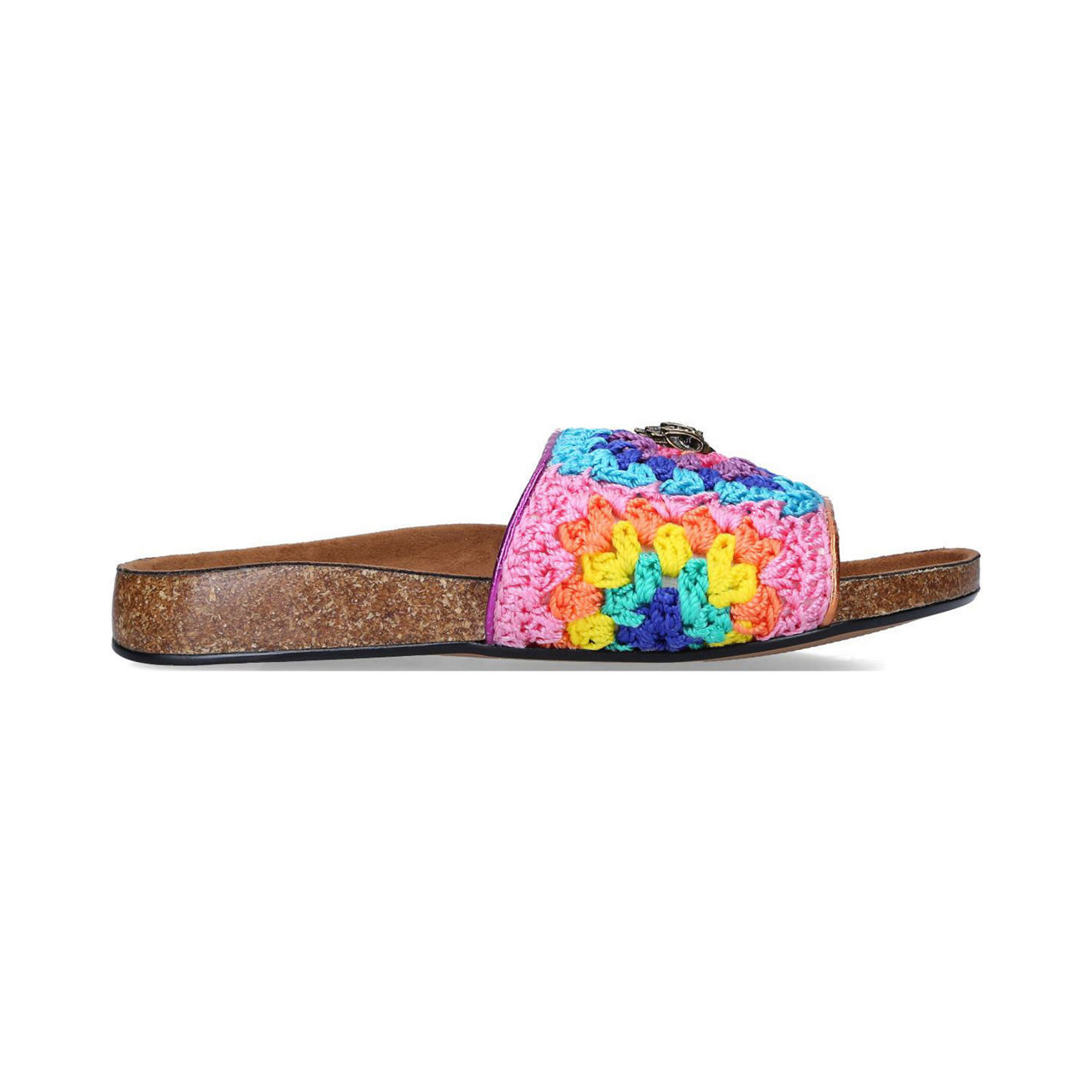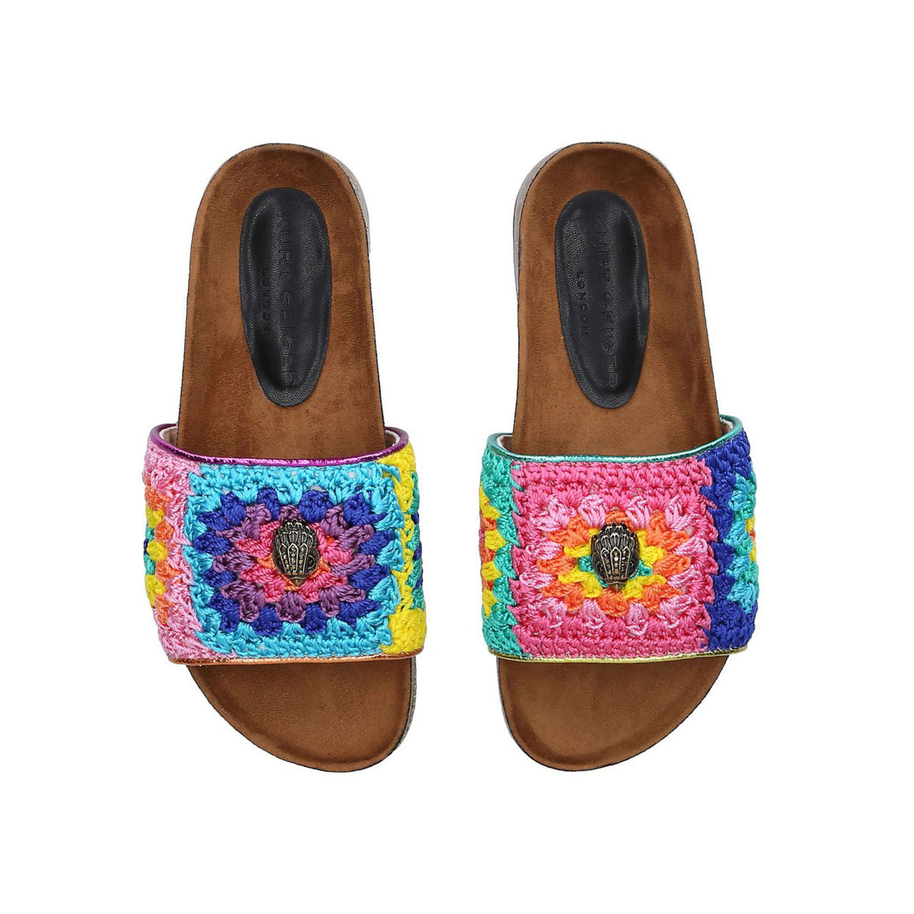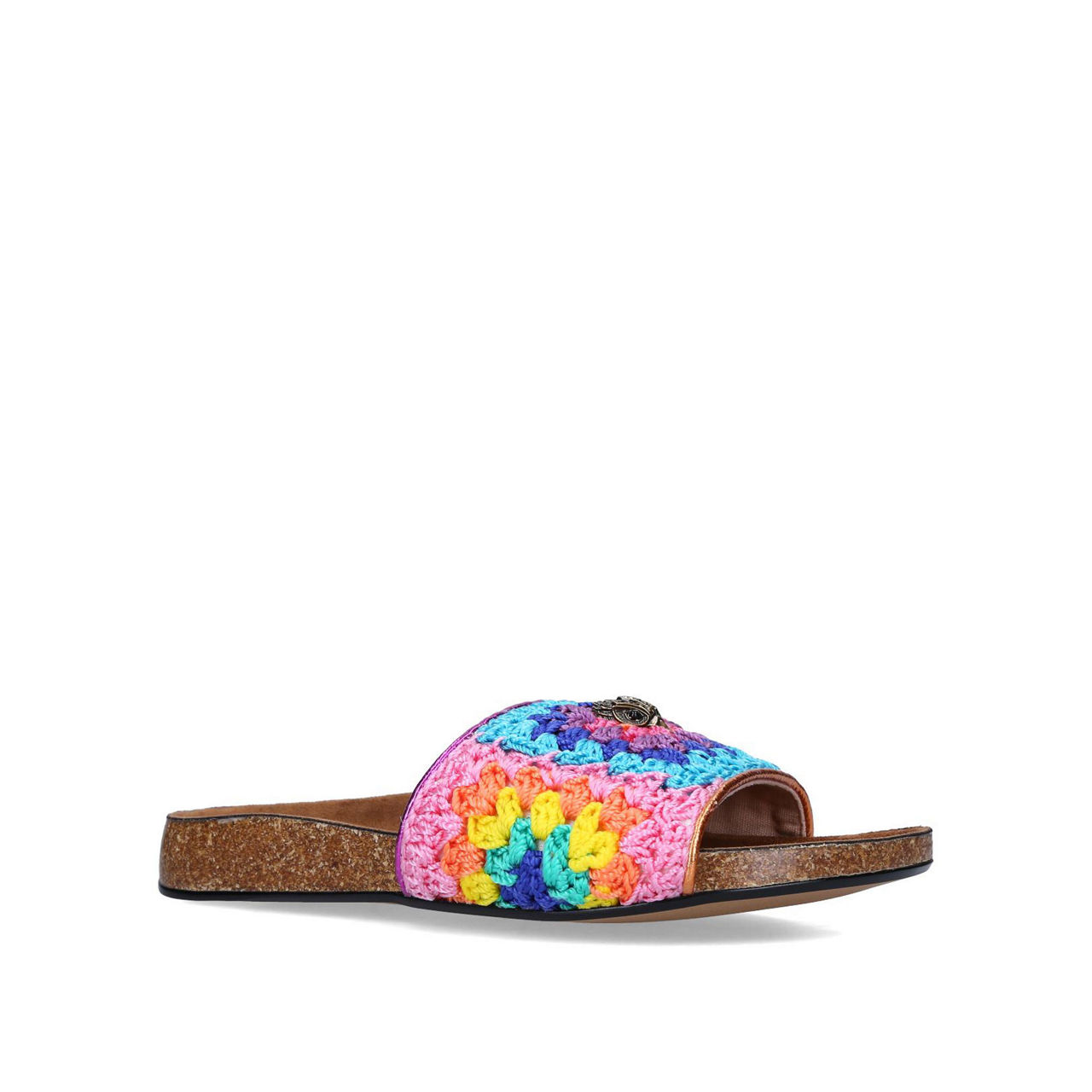 Get ahead of the trend with Kurt Geiger London's Ozark slides. Defined by a multi-coloured patchwork crochet strap, these are an assured addition to your comfortable footwear collection. Slip on the curved footbed to finish off an array of outfits.