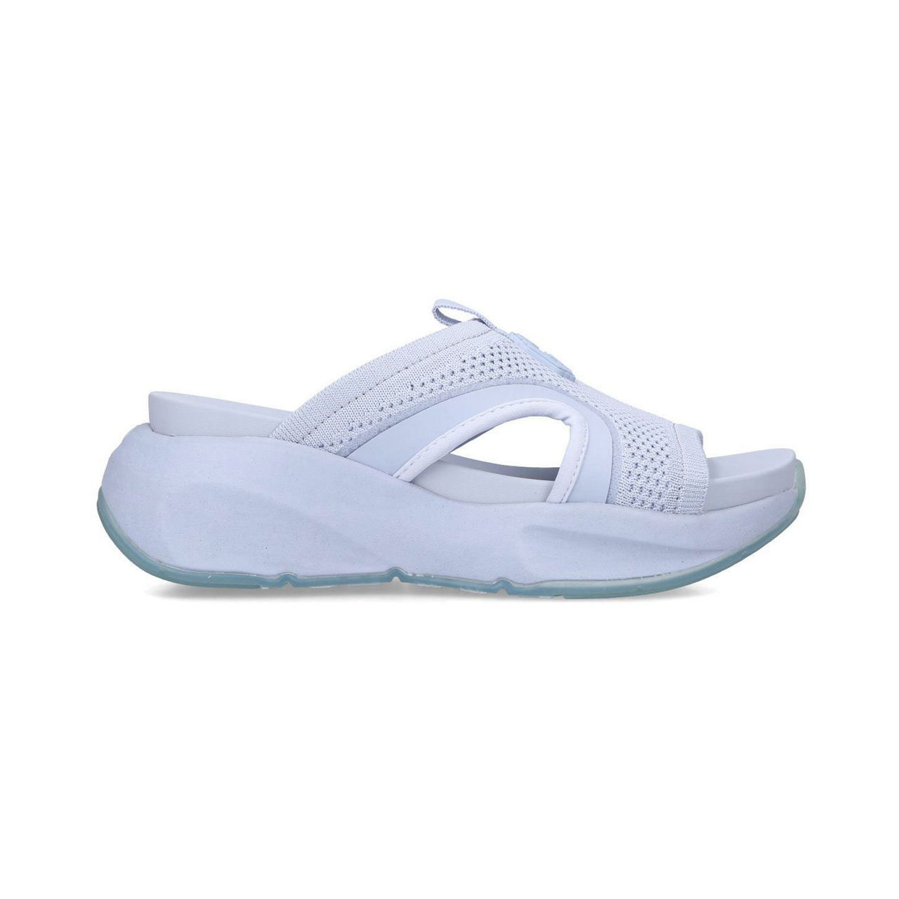 - Slip on, open toe, wide strap with side cut-outs, multi-textural upper, chunky sole.