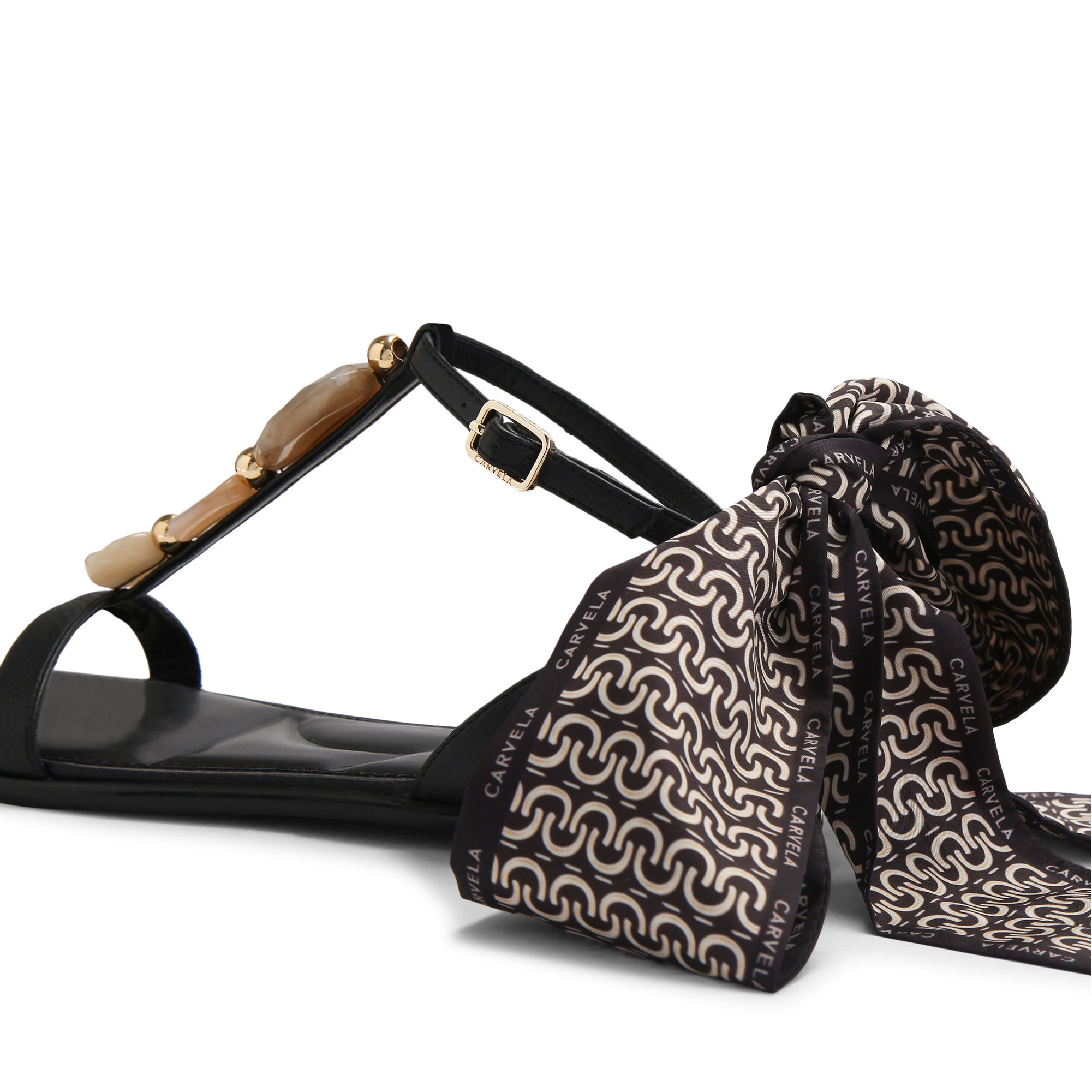- Stone detail across the strap, statement satin scarf to wrap around the ankle