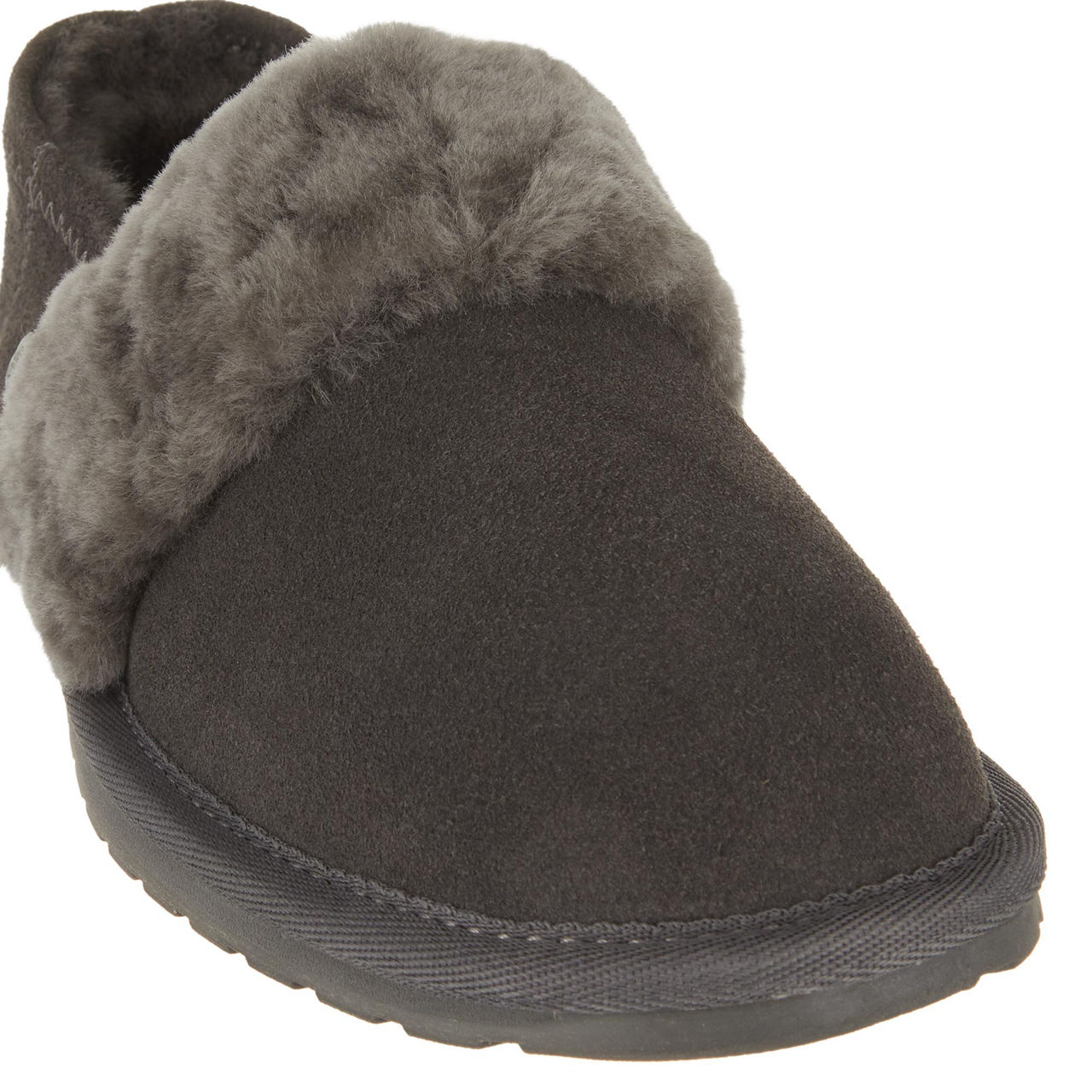 - Slip-on style, shearling lining, contrast stitching, logo detail.