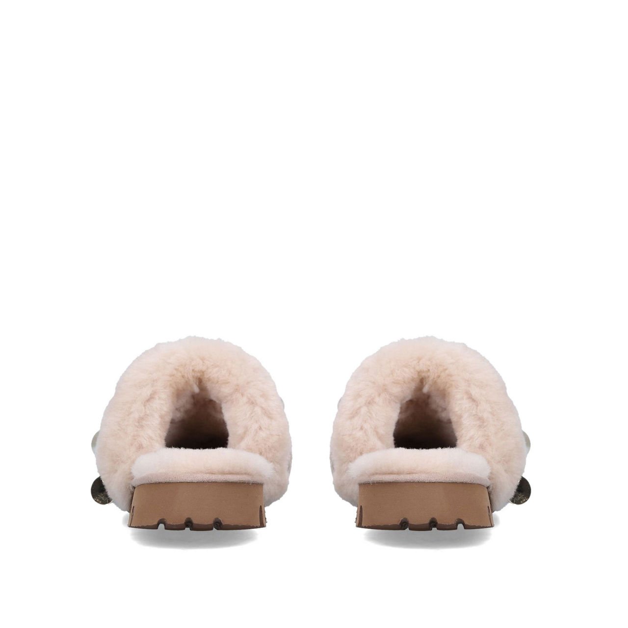 - Composition: Sheepskin, shearling lined, rubber sole.