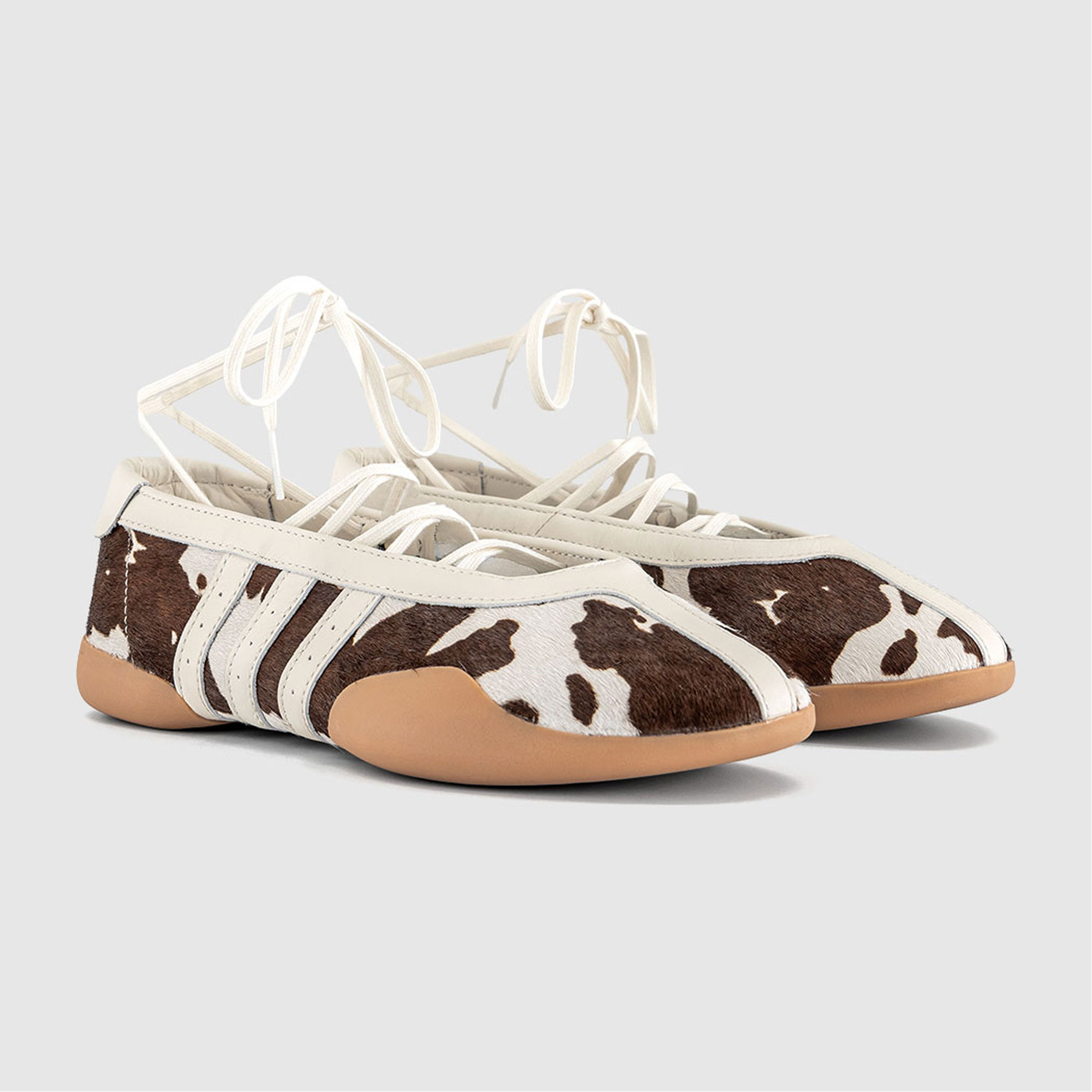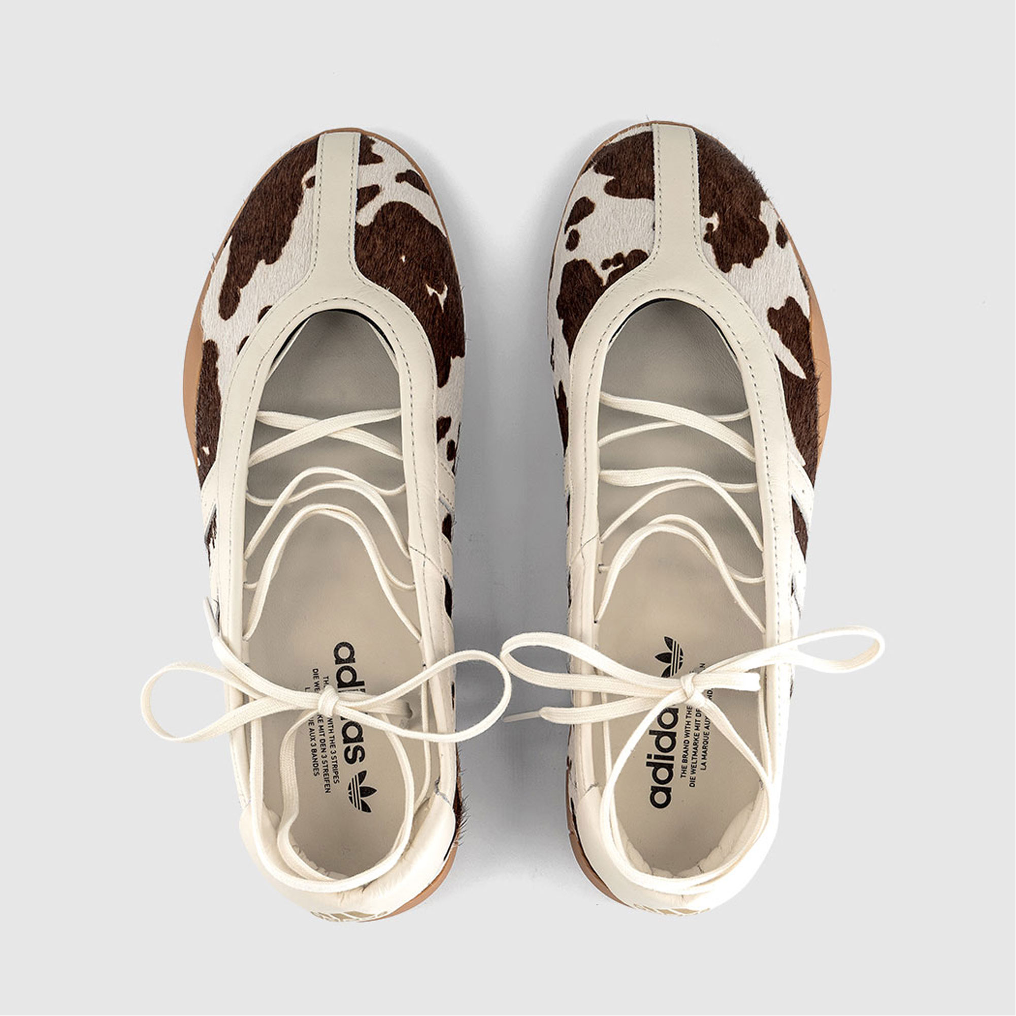 • Lace-up fastening, cow print, gum sole