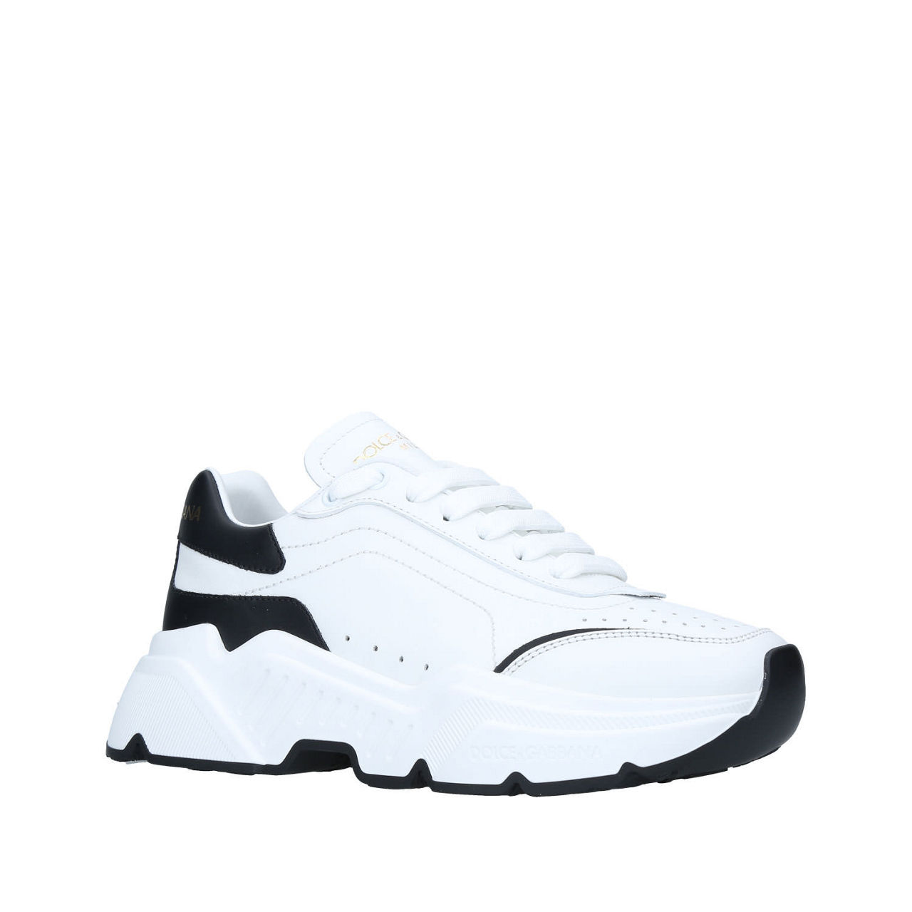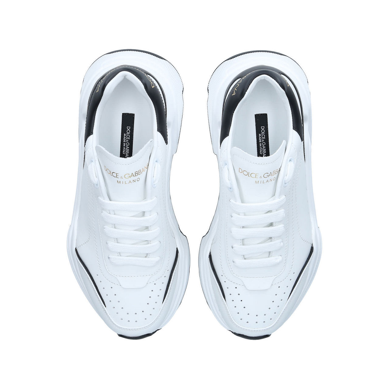 Dolce and Gabbana have expertly offset a bold, oversized silhouette with a minimalist design as seen in the Daymaster Trainers. Made from leather, this pair feature a clean cut low top style with perforated air holes and sharp contrasting panels. Formed on a chunky sole that's deceivingly lightweight, these fashion-focussed trainers are stamped with the brands gold-tone logo lettering for instant designer recognition. Take your style to the next level and team with cropped denim or a midi dress.