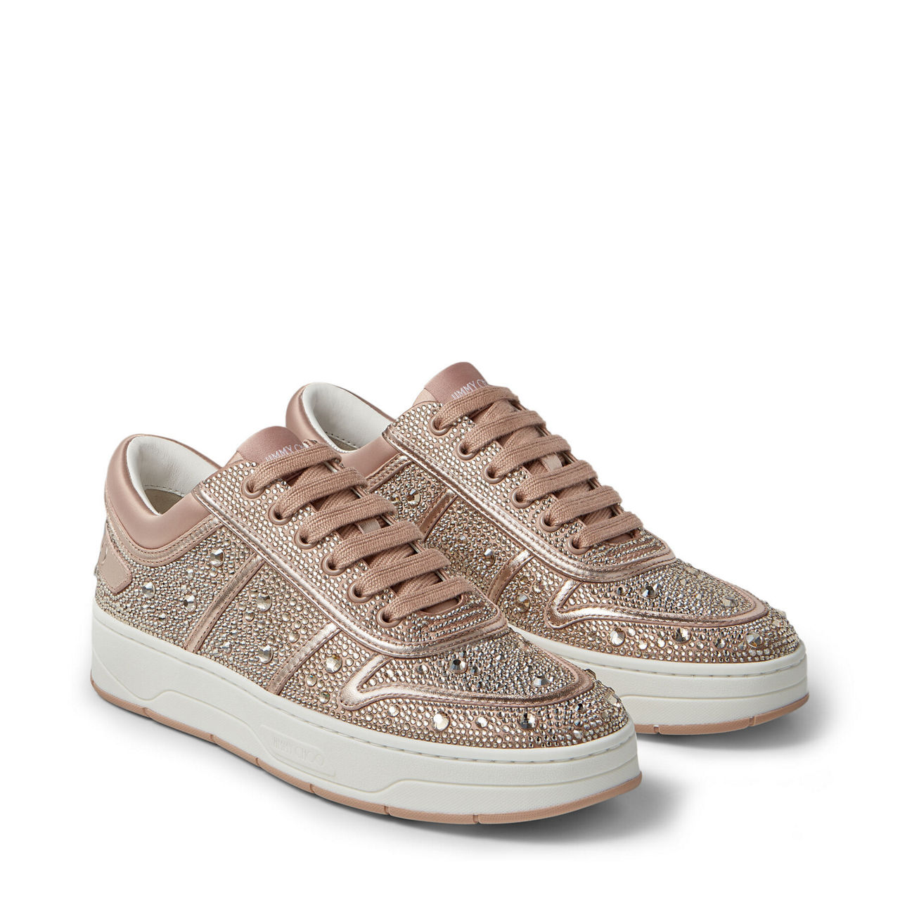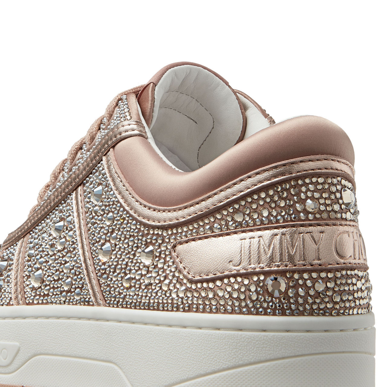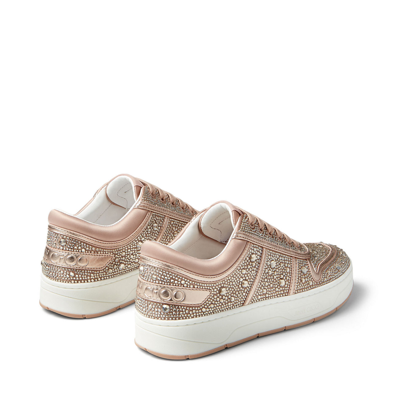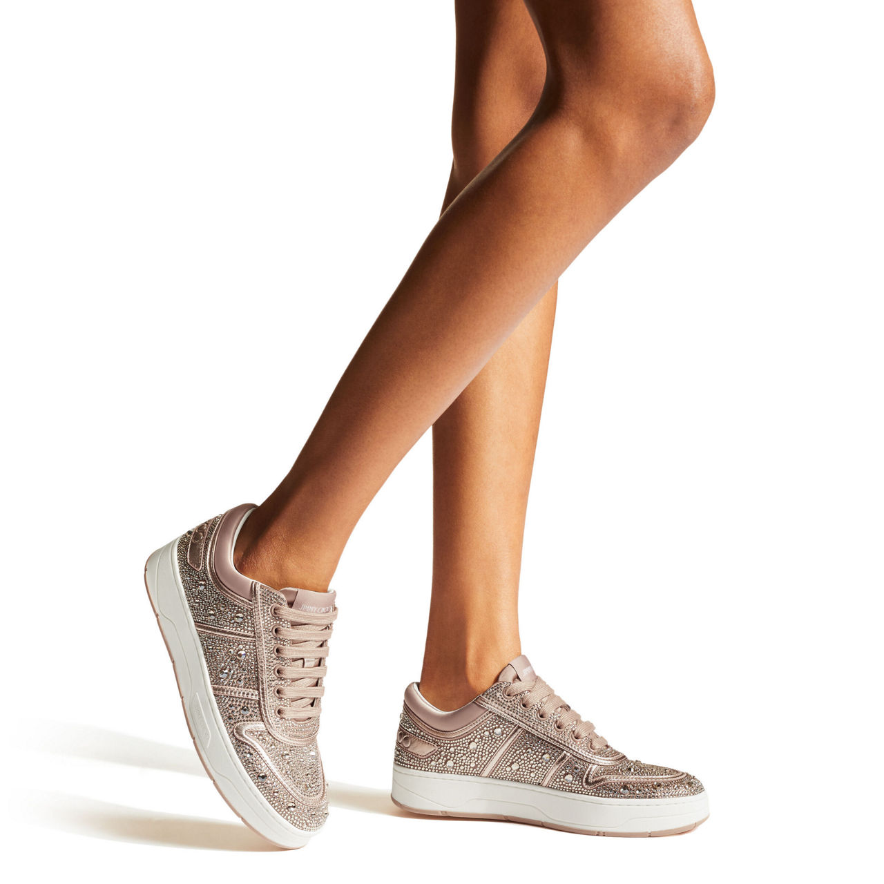 A signature style from Jimmy Choo, the Hawaii trainer arrives in ballet pink satin with crystal embellishment to make a sartorial statement this season. Serving understated though unmistakable glamour, the trainer sits on a platform sole to elevate you and your ensemble.