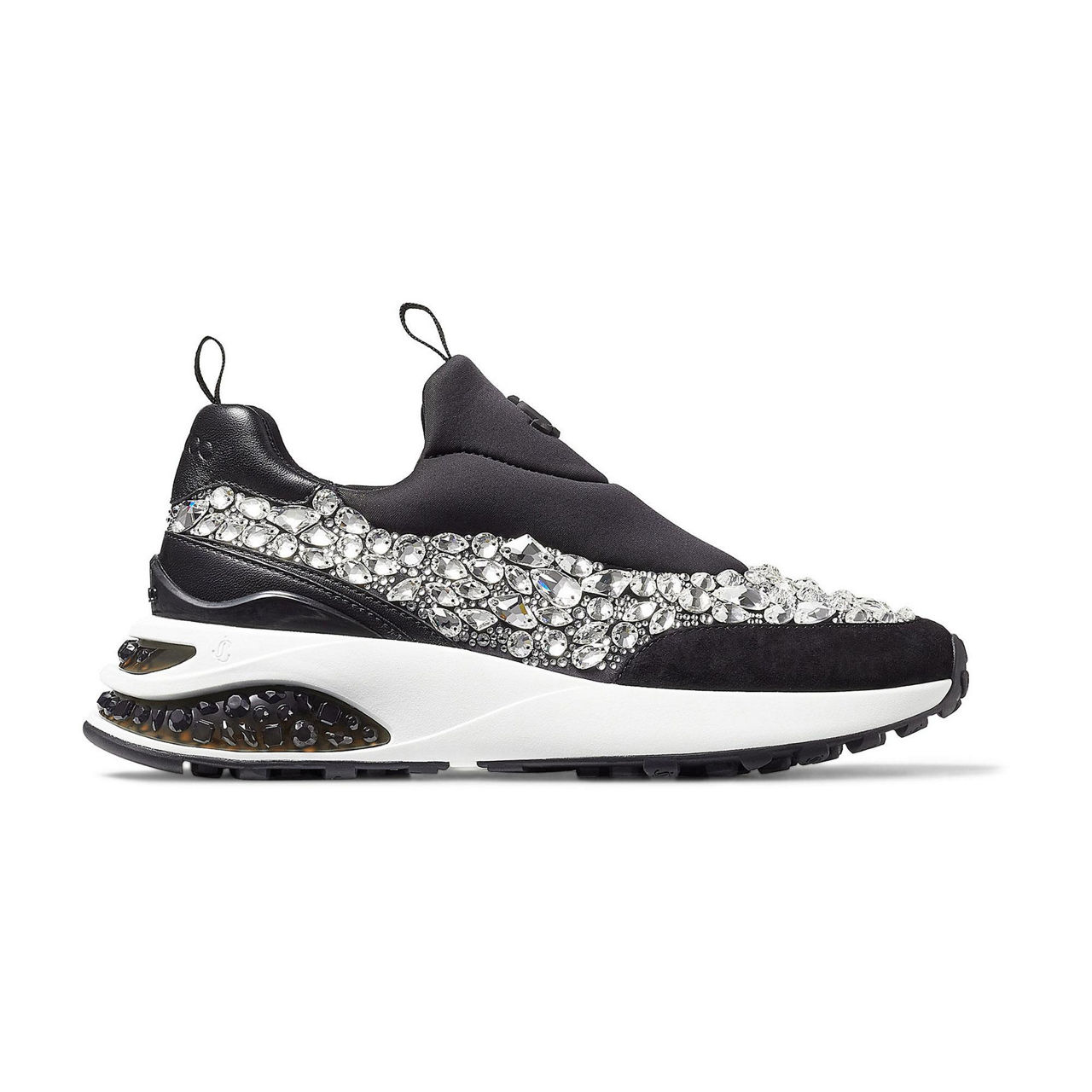 JIMMY CHOO Memphis-F Neoprene Leather Crystal Low Top Trainers