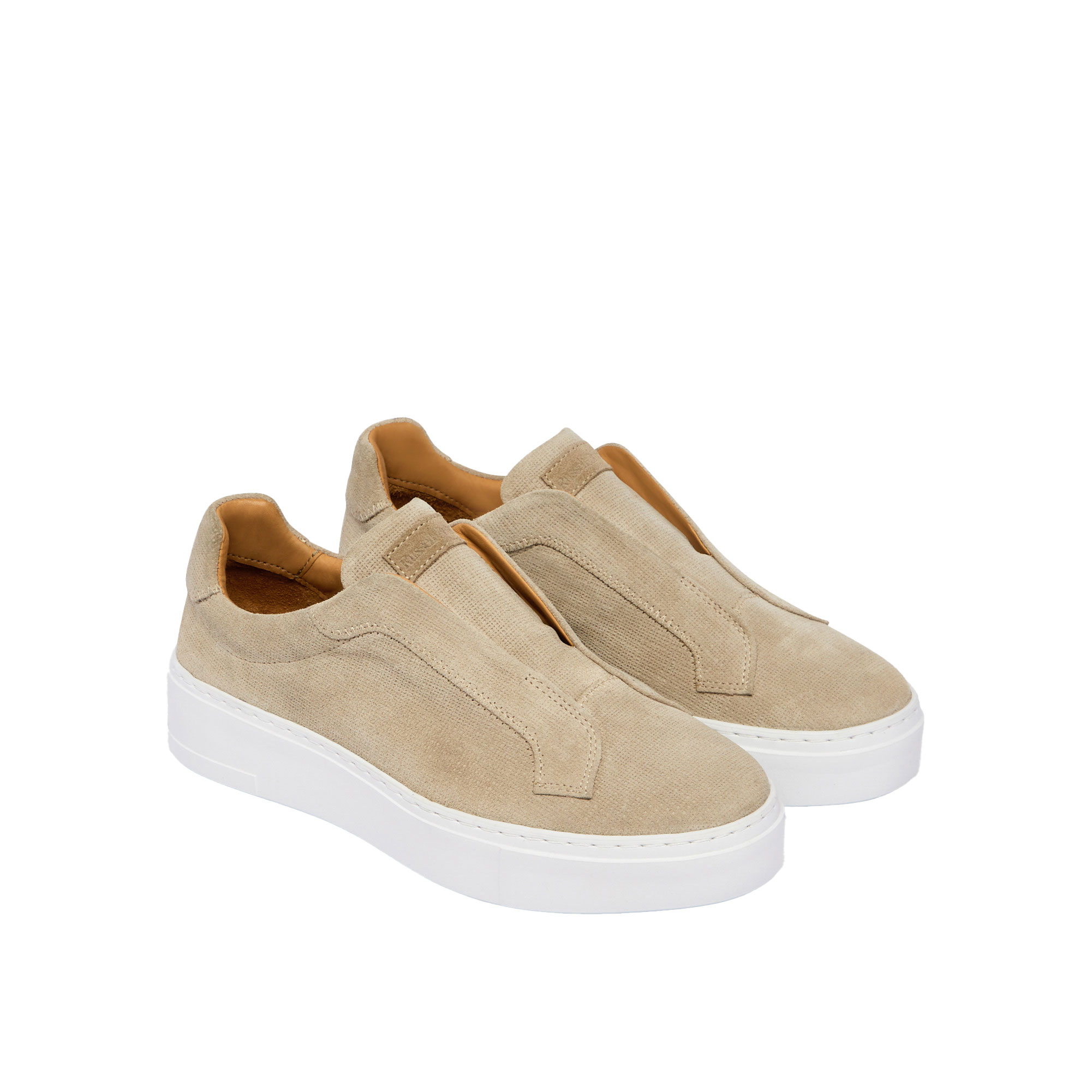 • Laceless silhouette, lightweight flatform sole, padded ankle tab, soft leather lining, ultimate everyday comfort