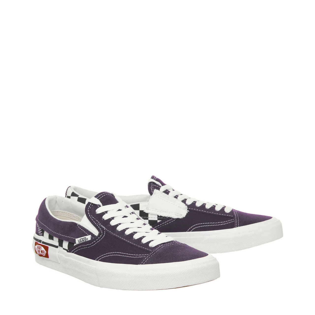 Enliven your everyday selection with the Slip on Cap Trainers from Vans In a classic slip on silhouette, this pair feature the brands iconic checkerboard print combined with a canvas and suede upper, while the design is complete with signature rubber waffle outsoles.