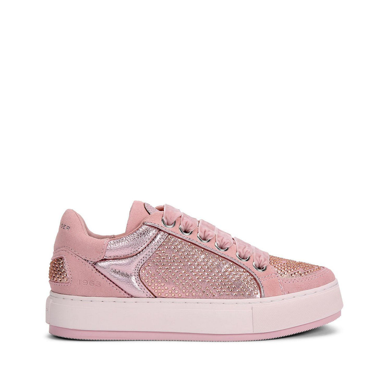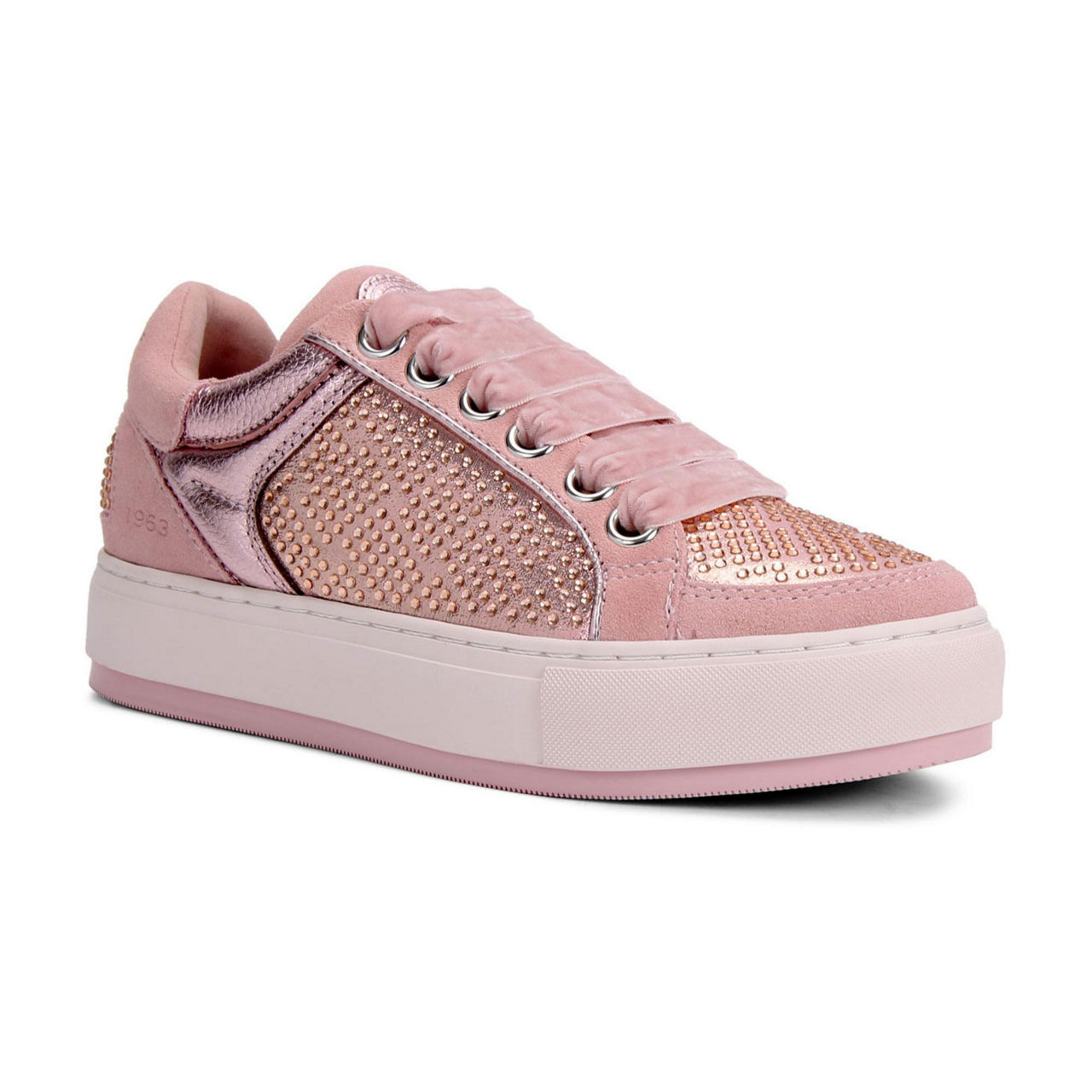 • Round toe, lace-up fastening, flatform sole, stone embellishment