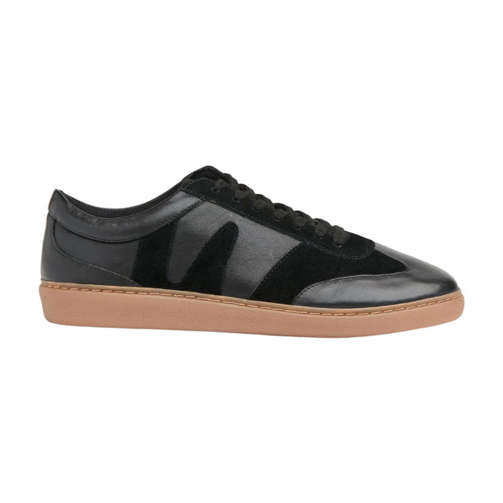 - Suede and leather mix, low-top profile, lace-up fastening, contrast rubber sole, round toe