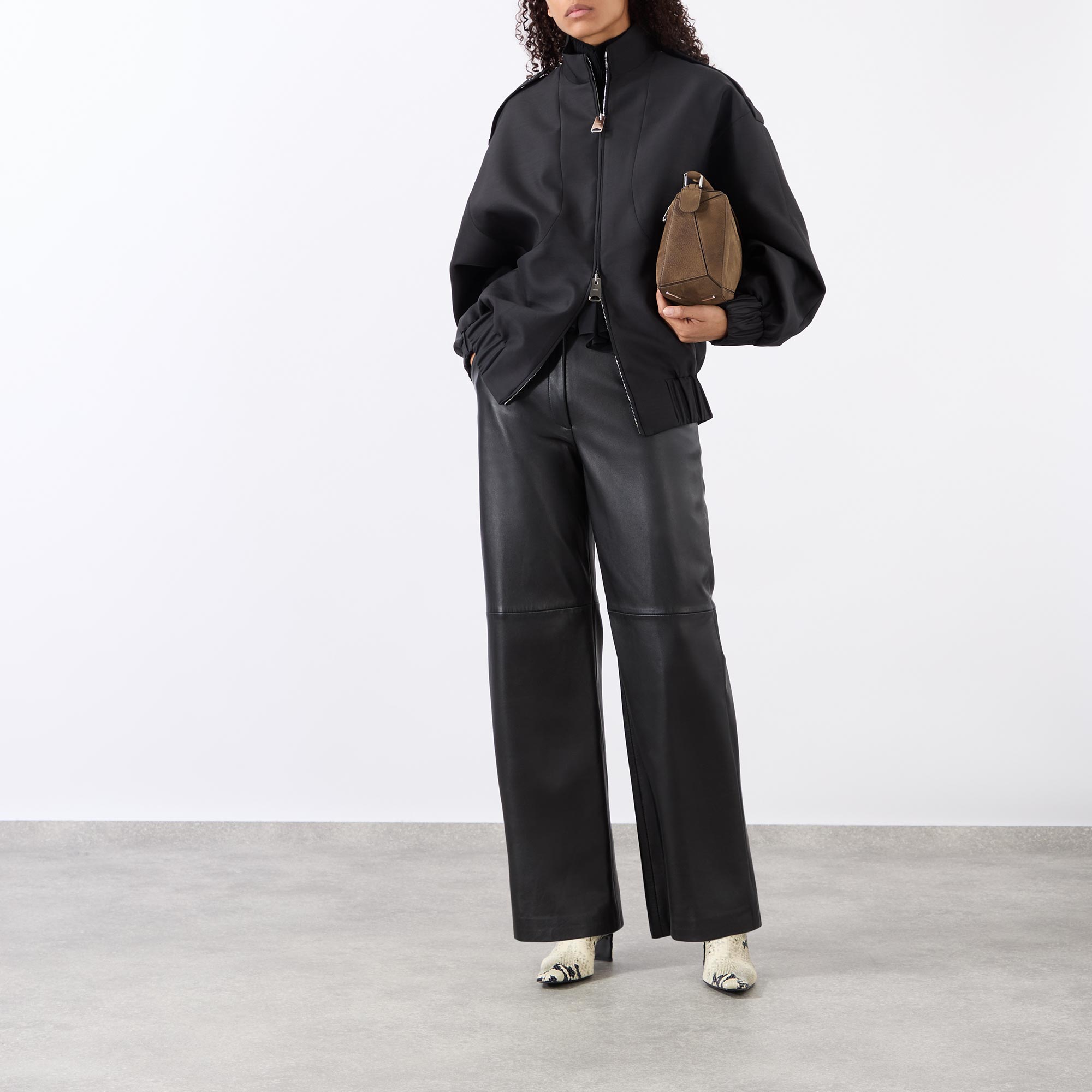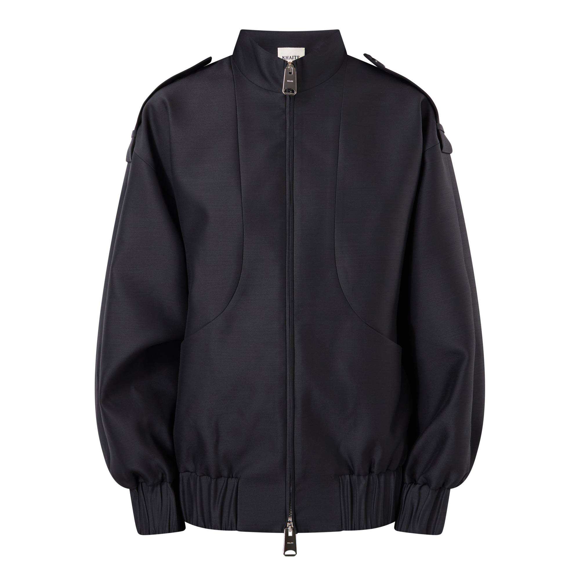 Khaite's signature minimalistic aesthetic is showcased in the SS26 collection, highlighted in the design of the Sigi jacket. Cut from a textured faille fabric to an oversized fit, it features a high neckline and elasticated trims, fastening via two-way zip and finished with epaulette details and pockets.