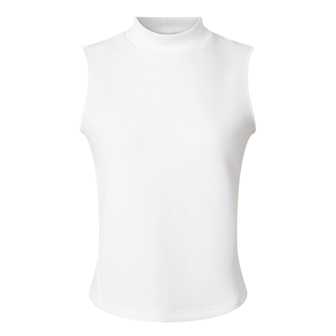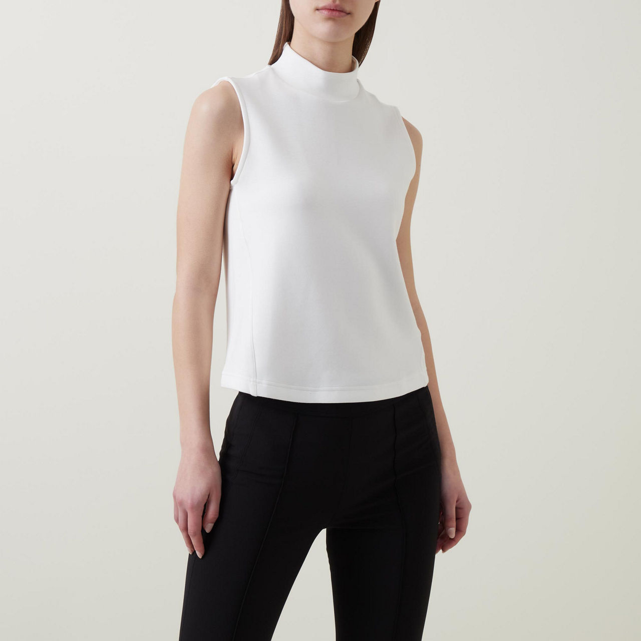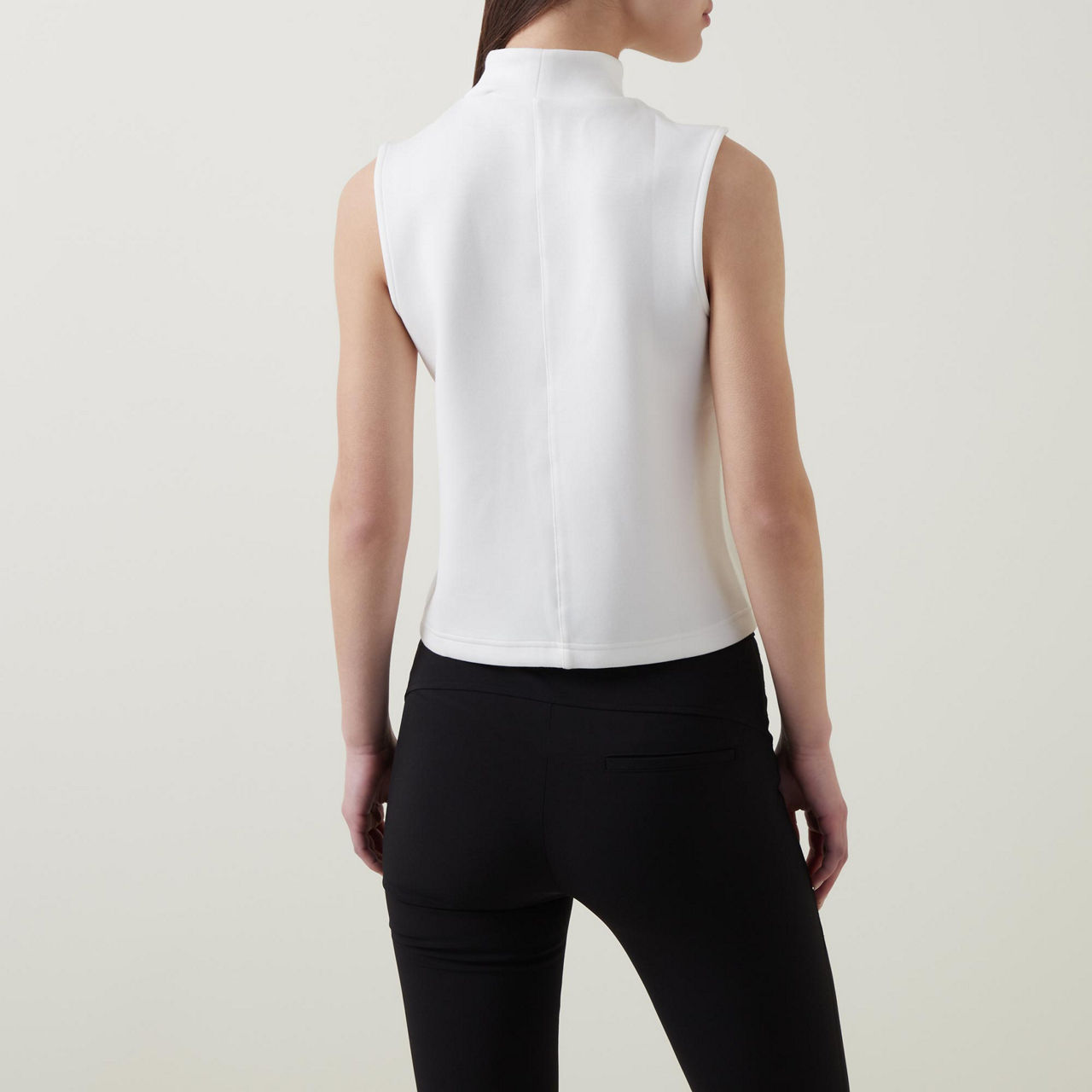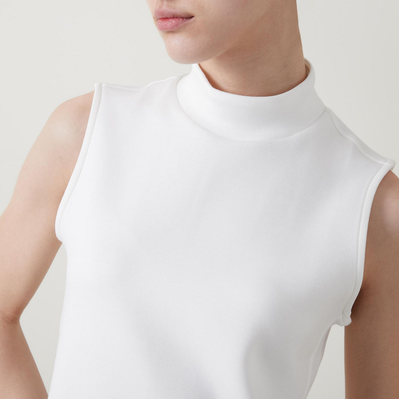 • Mock neckline, sleeveless, straight hemline, fine knit structure, four-way stretch